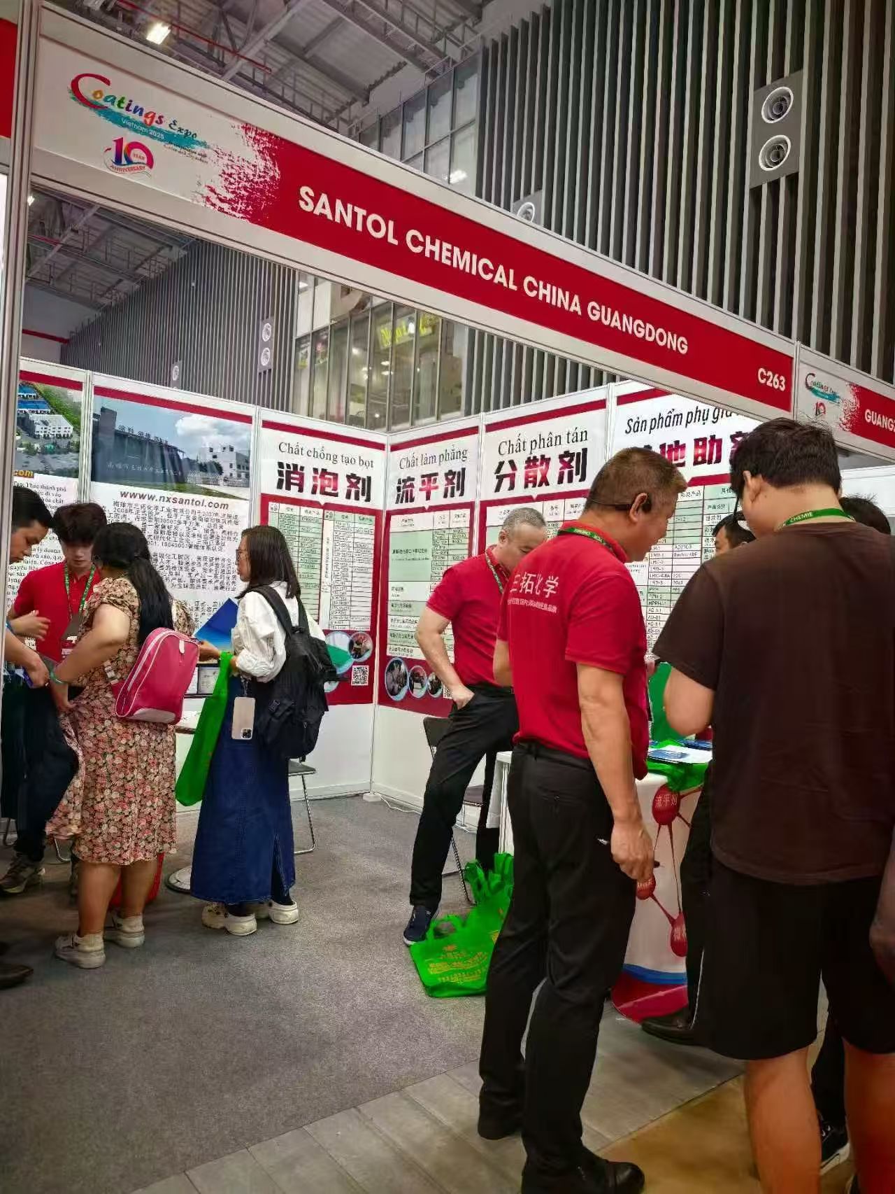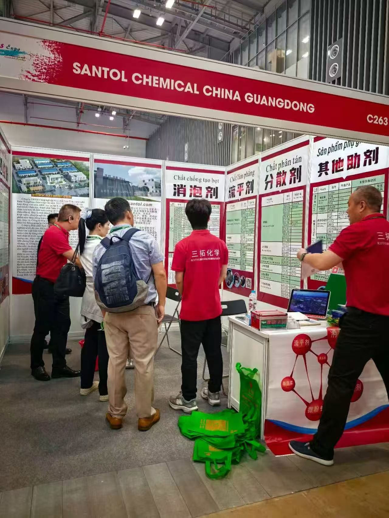 展会上,三拓化学特装展区以"好助剂·选三拓"为主题,集中展示流平剂、消泡剂、防沉浆、蜡粉、砂纹粉、消光粉和抗黄变剂七大拳头产品亮相胡志明展览中心。
