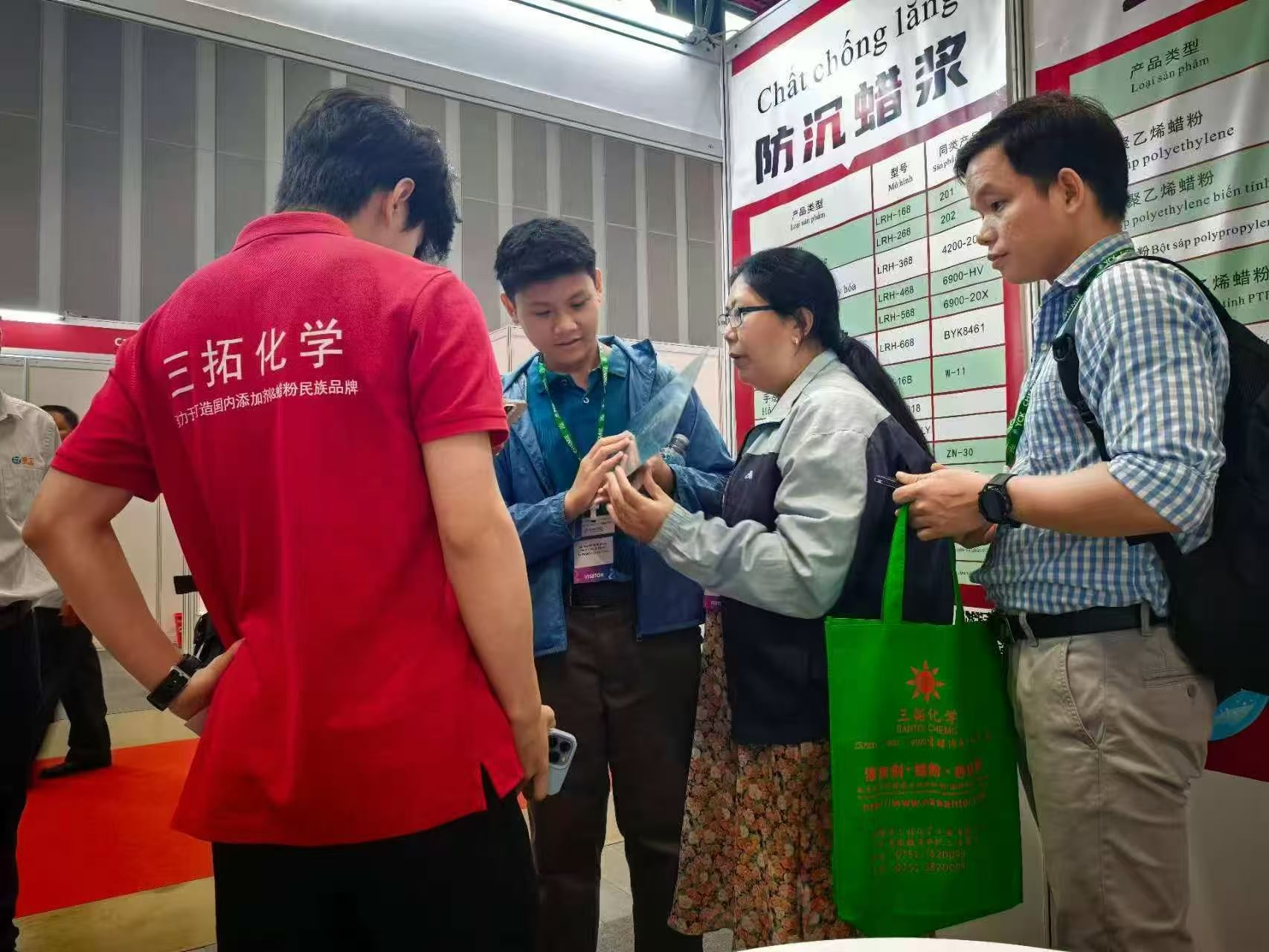 展会期间,三拓为配合越南市场开拓,三拓上线多语言智能选型系统。客户输入涂料类型、施工方式等参数,即可获得定制化添加剂方案。凭借越南市场上升的发展潜力,三拓的国际贸易市场将进一步得到更大的发展。